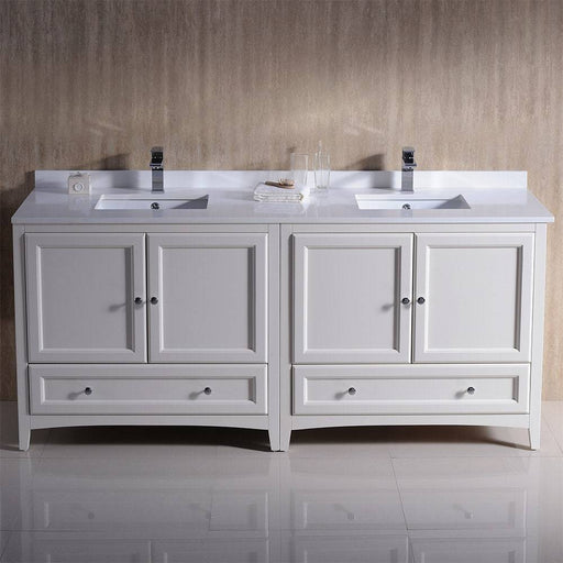 View full detailsFresca FCB20-301230AW-CWH-U Oxford 72" Antique White Traditional Double Sink Bathroom Cabinets with Top & Sinks