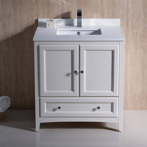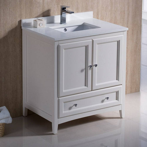 View full detailsFresca FCB2030AW-CWH-U Oxford 30" Antique White Traditional Bathroom Cabinet with Top & Sink