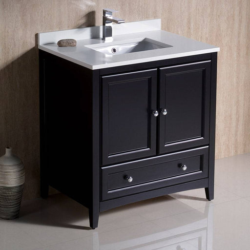 View full detailsFresca FCB2030ES-CWH-U Oxford 30" Espresso Traditional Bathroom Cabinet with Top & Sink