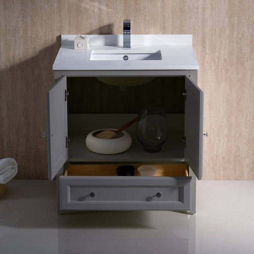 View full detailsFresca FCB2030GR-CWH-U Oxford 30" Gray Traditional Bathroom Cabinet with Top & Sink
