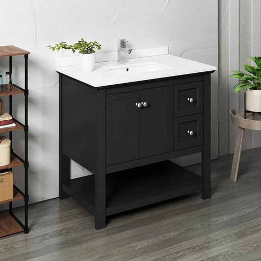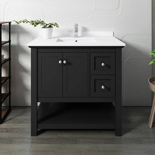 Fresca FCB2336BL-CWH-U Manchester 36" Black Traditional Bathroom Cabinet with Top & Sink