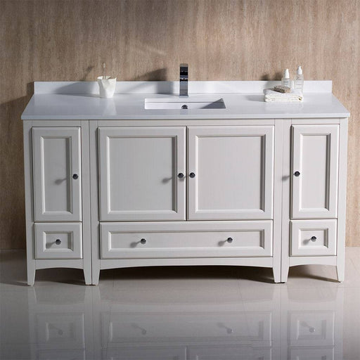 Fresca FCB20-123612AW-CWH-U Oxford 60" Antique White Traditional Bathroom Cabinets with Top & Sink