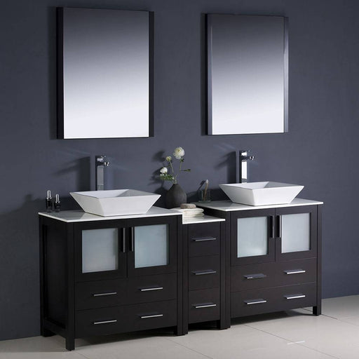View full detailsFresca FVN62-301230ES-VSL Torino 72" Espresso Modern Double Sink Bathroom Vanity with Side Cabinet & Vessel Sinks