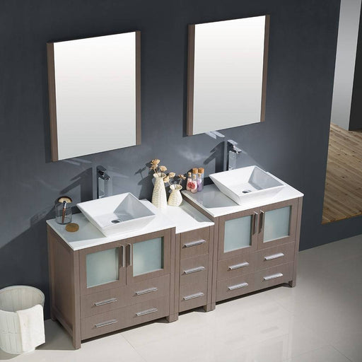 View full detailsFresca FVN62-301230GO-VSL Torino 72" Gray Oak Modern Double Sink Bathroom Vanity with Side Cabinet & Vessel Sinks