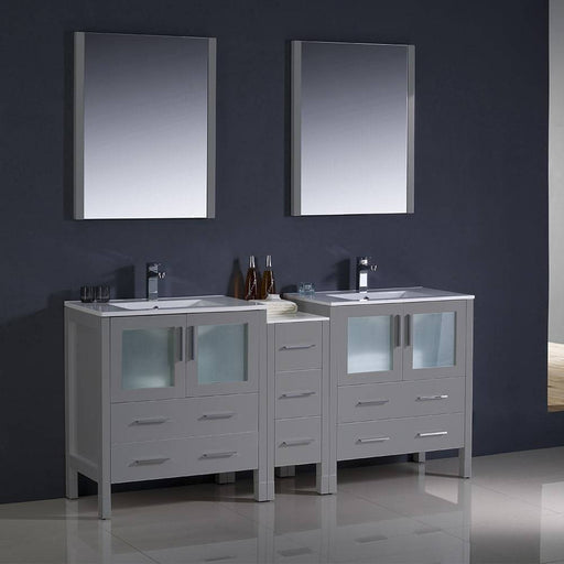 View full detailsFresca FVN62-301230GR-UNS Torino 72" Grey Modern Double Sink Bathroom Vanity with Side Cabinet & Integrated Sinks