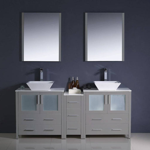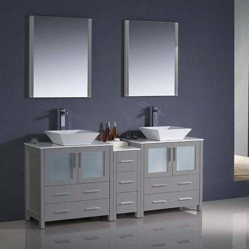View full detailsFresca FVN62-301230GR-VSL Torino 72" Grey Modern Double Sink Bathroom Vanity with Side Cabinet & Vessel Sinks