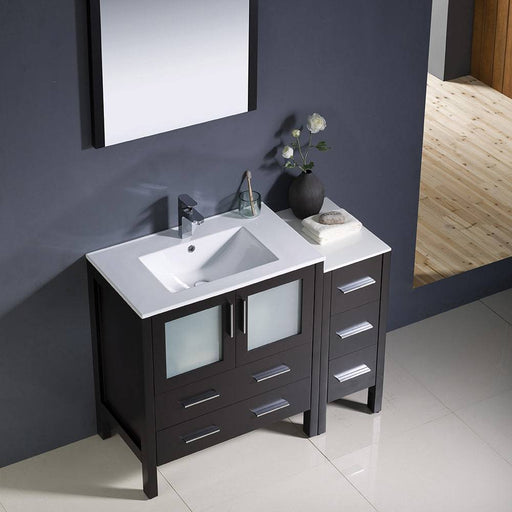 View full detailsFresca FVN62-3012ES-UNS Torino 42" Espresso Modern Bathroom Vanity with Side Cabinet & Integrated Sink