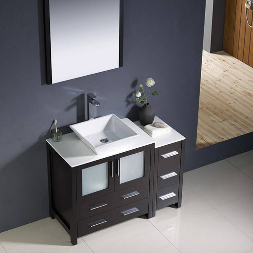 View full detailsFresca FVN62-3012ES-VSL Torino 42" Espresso Modern Bathroom Vanity with Side Cabinet & Vessel Sink