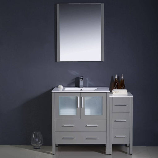 View full detailsFresca FVN62-3012GR-UNS Torino 42" Grey Modern Bathroom Vanity with Side Cabinet & Integrated Sink