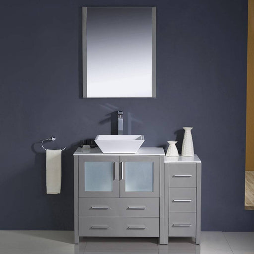 View full detailsFresca FVN62-3012GR-VSL Torino 42" Grey Modern Bathroom Vanity with Side Cabinet & Vessel Sink