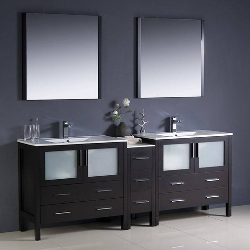 View full detailsFresca FVN62-361236ES-UNS Torino 84" Espresso Modern Double Sink Bathroom Vanity with Side Cabinet & Integrated Sinks