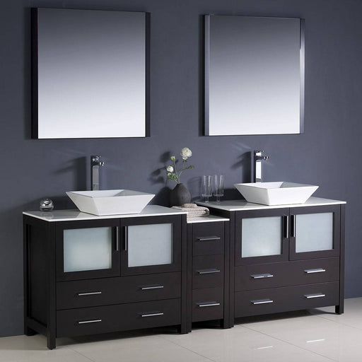 View full detailsFresca FVN62-361236ES-VSL Torino 84" Espresso Modern Double Sink Bathroom Vanity with Side Cabinet & Vessel Sinks