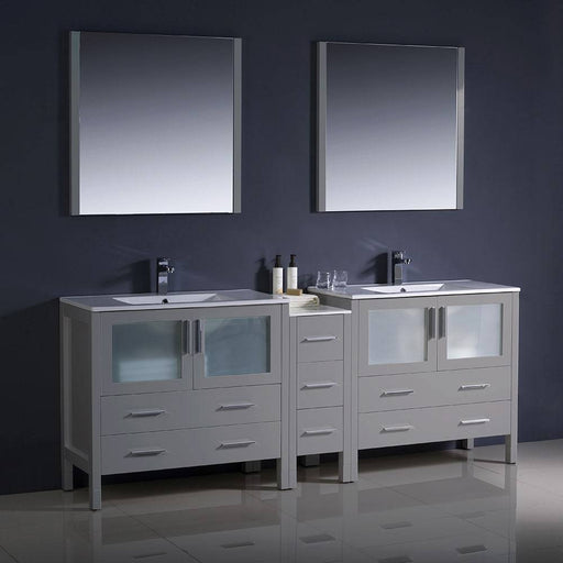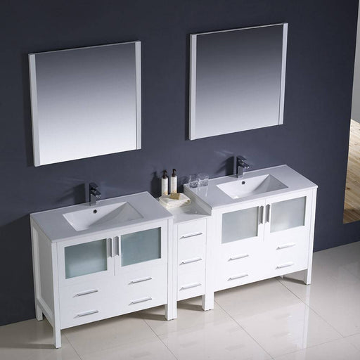 Fresca FVN62-361236WH-UNS Torino 84" White Modern Double Sink Bathroom Vanity with Side Cabinet & Integrated Sinks