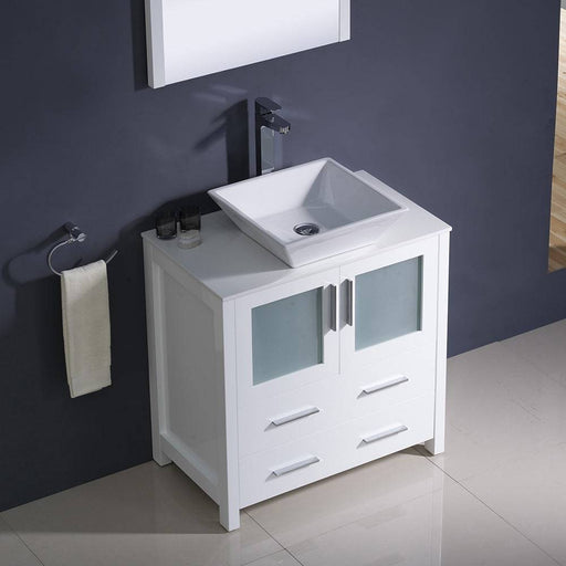 View full detailsFresca FVN6230WH-VSL Torino 30" White Modern Bathroom Vanity with Vessel Sink