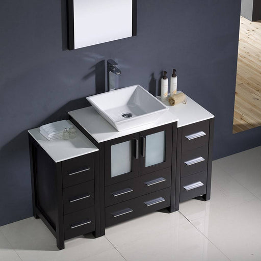 View full detailsFresca FVN62-123012ES-VSL Torino 54" Espresso Modern Bathroom Vanity with 2 Side Cabinets & Vessel Sink