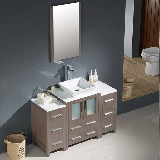 View full detailsFresca FVN62-123012GO-VSL Torino 54" Gray Oak Modern Bathroom Vanity with 2 Side Cabinets & Vessel Sink