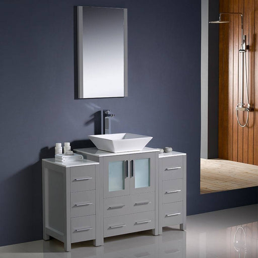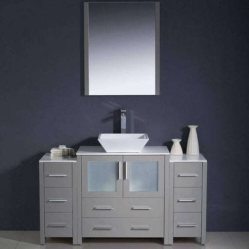 View full detailsFresca FVN62-123012GR-VSL Torino 54" Grey Modern Bathroom Vanity with 2 Side Cabinets & Vessel Sink