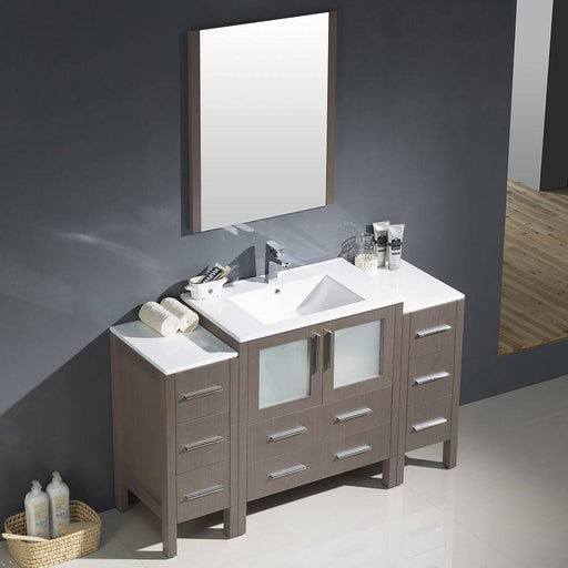 View full detailsFresca FVN62-123012GO-UNS Torino 54" Gray Oak Modern Bathroom Vanity with 2 Side Cabinets & Integrated Sink