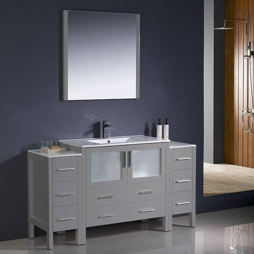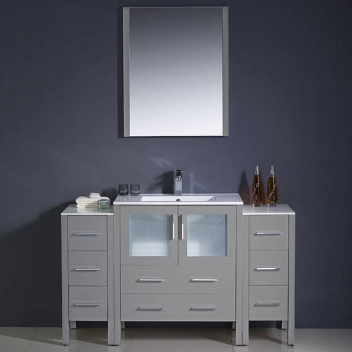 View full detailsFresca FVN62-123012GR-UNS Torino 54" Grey Modern Bathroom Vanity with 2 Side Cabinets & Integrated Sink