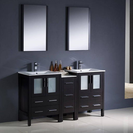 View full detailsFresca FVN62-241224ES-UNS Torino 60" Espresso Modern Double Sink Bathroom Vanity with Side Cabinet & Integrated Sinks