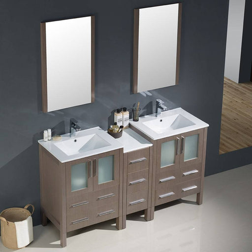 View full detailsFresca FVN62-241224GO-UNS Torino 60" Gray Oak Modern Double Sink Bathroom Vanity with Side Cabinet & Integrated Sinks
