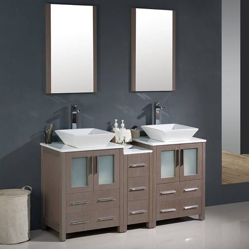 View full detailsFresca FVN62-241224GO-VSL Torino 60" Gray Oak Modern Double Sink Bathroom Vanity with Side Cabinet & Vessel Sinks