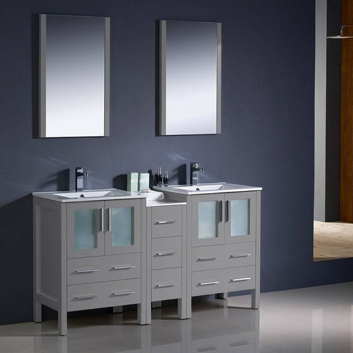 View full detailsFresca FVN62-123612GR-UNS Torino 60" Grey Modern Bathroom Vanity with 2 Side Cabinets & Integrated Sink