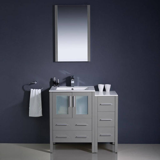 View full detailsFresca FVN62-2412GR-UNS Torino 36" Grey Modern Bathroom Vanity with Side Cabinet & Integrated Sinks