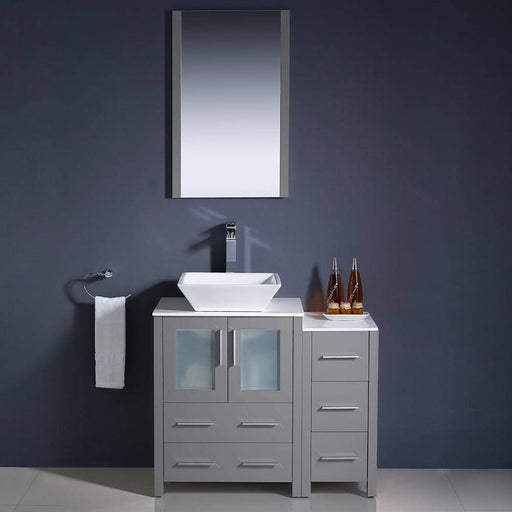 View full detailsFresca FVN62-2412GR-VSL Torino 36" Grey Modern Bathroom Vanity with Side Cabinet & Vessel Sink