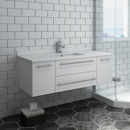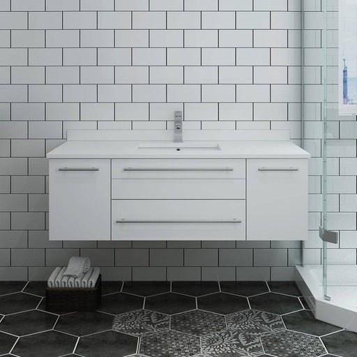 View full detailsFresca FCB6148WH-UNS-CWH-U Lucera 48" White Wall Hung Modern Bathroom Cabinet with Top & Undermount Sink
