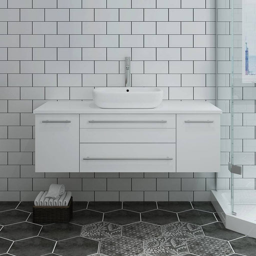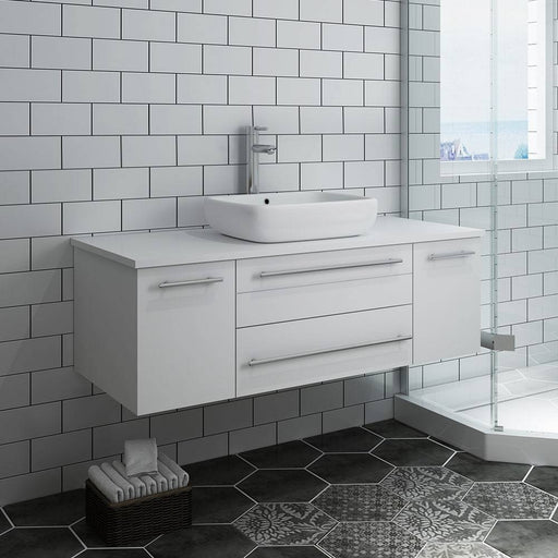 View full detailsFresca FCB6148WH-VSL-CWH-V Lucera 48" White Wall Hung Modern Bathroom Cabinet with Top & Vessel Sink