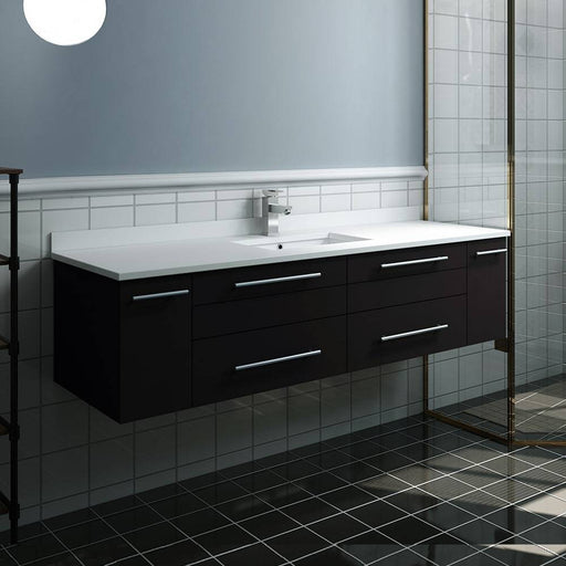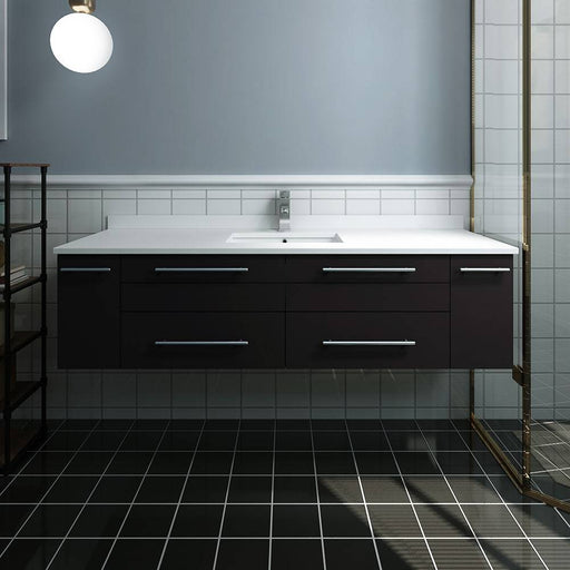 View full detailsFresca FCB6160ES-UNS-CWH-U Lucera 60" Espresso Wall Hung Modern Bathroom Cabinet with Top & Single Undermount Sink