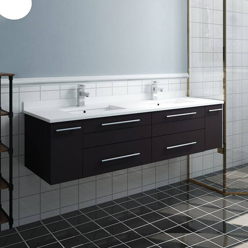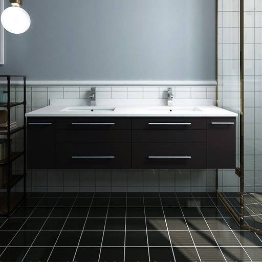 View full detailsFresca FCB6160ES-UNS-D-CWH-U Lucera 60" Espresso Wall Hung Modern Bathroom Cabinet with Top & Double Undermount Sinks