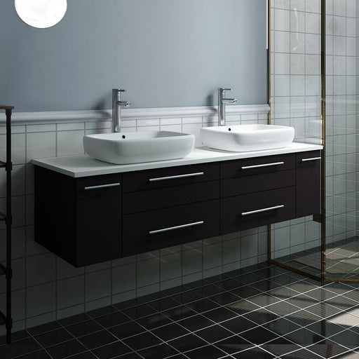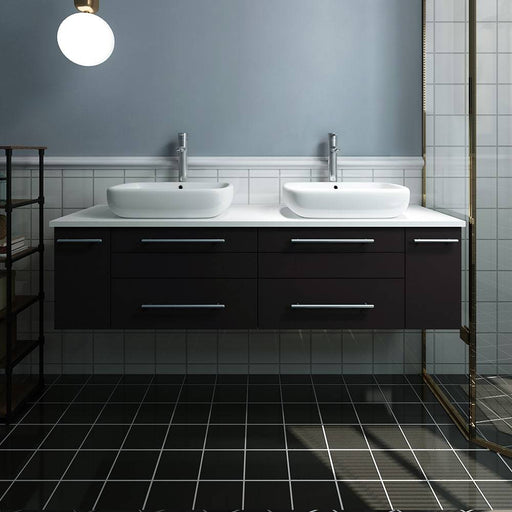 View full detailsFresca FCB6160ES-VSL-D-CWH-V Lucera 60" Espresso Wall Hung Modern Bathroom Cabinet with Top & Double Vessel Sinks