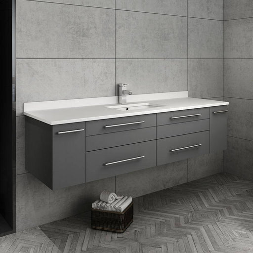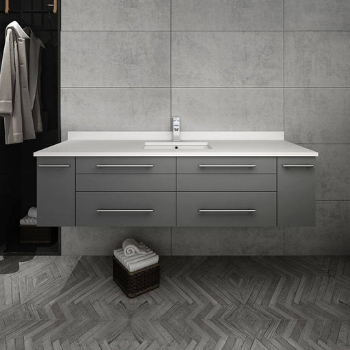 View full detailsFresca FCB6160GR-UNS-CWH-U Lucera 60" Gray Wall Hung Modern Bathroom Cabinet with Top & Single Undermount Sink