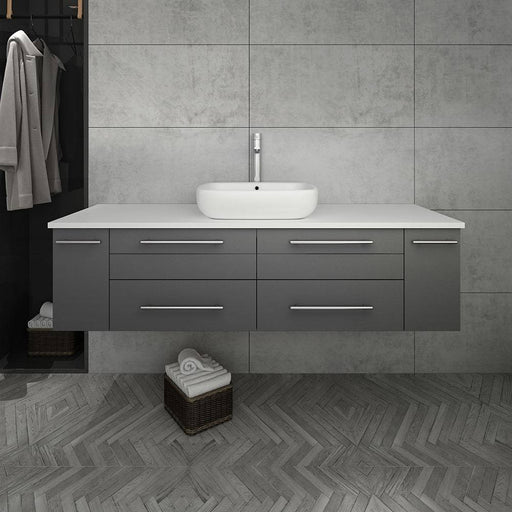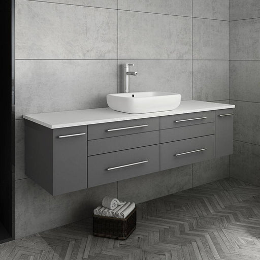 View full detailsFresca FCB6160GR-VSL-CWH-V Lucera 60" Gray Wall Hung Modern Bathroom Cabinet with Top & Single Vessel Sink