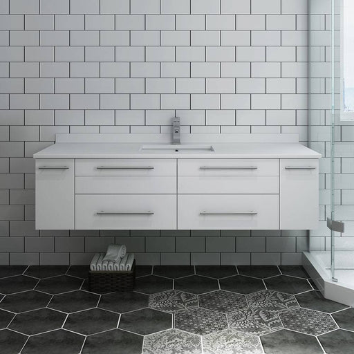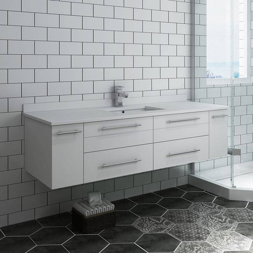 View full detailsFresca FCB6160WH-UNS-CWH-U Lucera 60" White Wall Hung Modern Bathroom Cabinet with Top & Single Undermount Sink