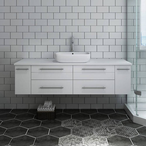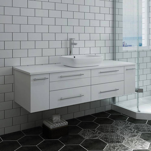 View full detailsFresca FCB6160WH-VSL-CWH-V Lucera 60" White Wall Hung Modern Bathroom Cabinet with Top & Single Vessel Sink