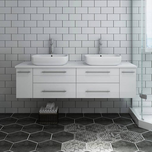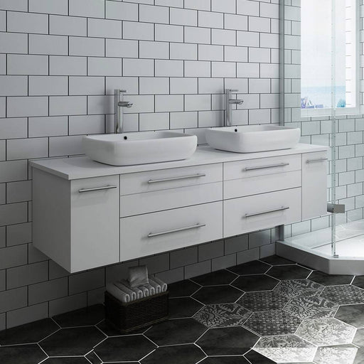 View full detailsFresca FCB6160WH-VSL-D-CWH-V Lucera 60" White Wall Hung Modern Bathroom Cabinet with Top & Double Vessel Sinks