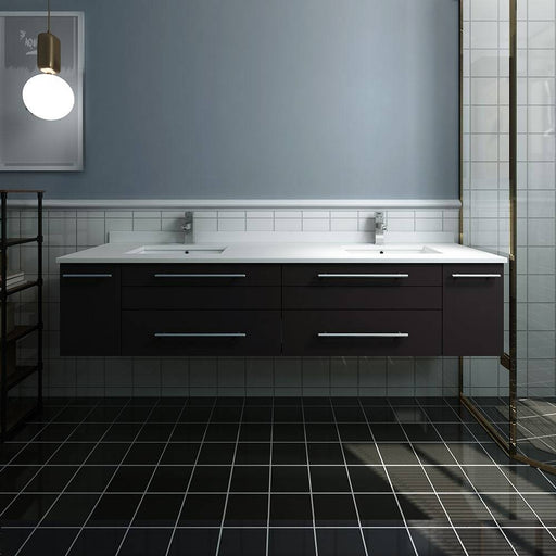 View full detailsFresca FCB6172ES-UNS-D-CWH-U Lucera 72" Espresso Wall Hung Modern Bathroom Cabinet with Top & Double Undermount Sinks
