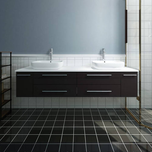 View full detailsFresca FCB6172ES-VSL-D-CWH-V Lucera 72" Espresso Wall Hung Modern Bathroom Cabinet with Top & Double Vessel Sinks