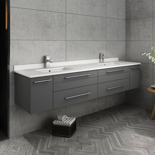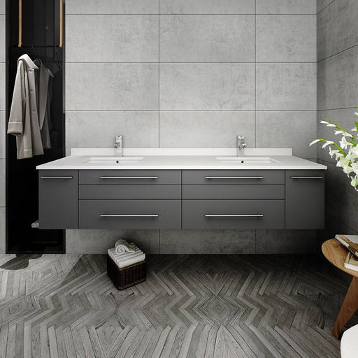 View full detailsFresca FCB6172GR-UNS-D-CWH-U Lucera 72" Gray Wall Hung Modern Bathroom Cabinet with Top & Double Undermount Sinks