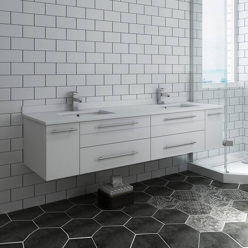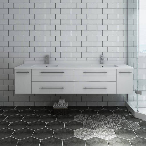 View full detailsFresca FCB6172WH-UNS-D-CWH-U Lucera 72" White Wall Hung Modern Bathroom Cabinet with Top & Double Undermount Sinks