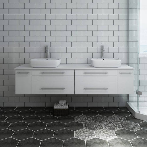 View full detailsFresca FCB6172WH-VSL-D-CWH-V Lucera 72" White Wall Hung Modern Bathroom Cabinet with Top & Double Vessel Sinks