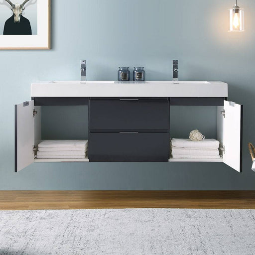View full detailsFresca FCB8360GG-D-I Valencia 60" Dark Slate Gray Wall Hung Double Sink Modern Bathroom Vanity