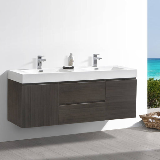 View full detailsFresca FCB8360GO-D-I Valencia 60" Gray Oak Wall Hung Double Sink Modern Bathroom Vanity