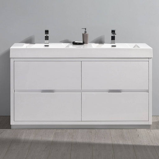 View full detailsFresca FCB8460WH-D-I Valencia 60" Glossy White Free Standing Double Sink Modern Bathroom Vanity
