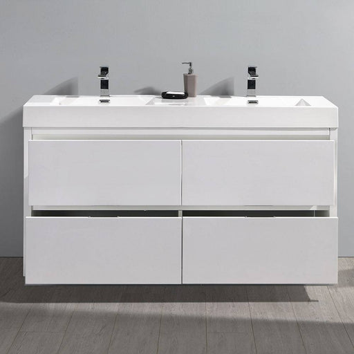 Fresca FCB8360WH-D-I Valencia 60" Glossy White Wall Hung Double Sink Modern Bathroom Vanity