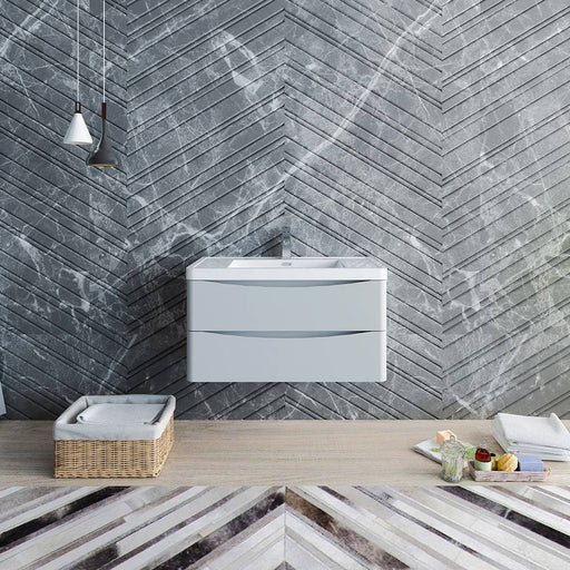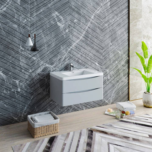 Fresca FCB9036GRG-I Tuscany 36" Glossy Gray Wall Hung Modern Bathroom Cabinet with Integrated Sink
