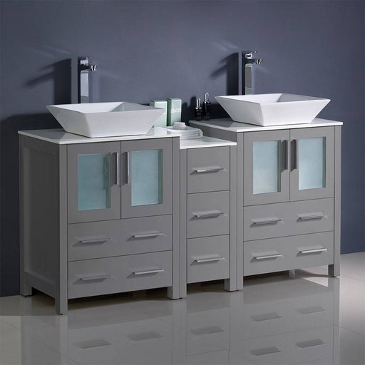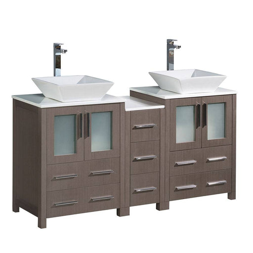View full detailsFresca FCB62-241224GR-CWH-V Torino 60" Grey Modern Double Sink Bathroom Cabinets with Tops & Vessel Sinks